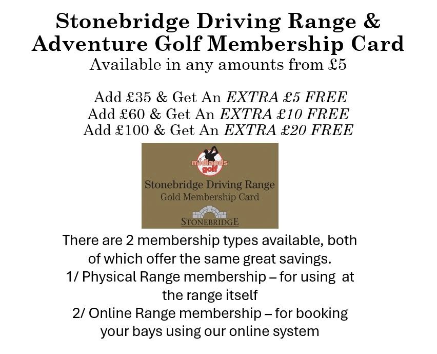 Physical Range Card: If you prefer to use your card at the range itself then you can buy a card at our kiosk or at: www.midlandsgolfonline.com and search for Membership