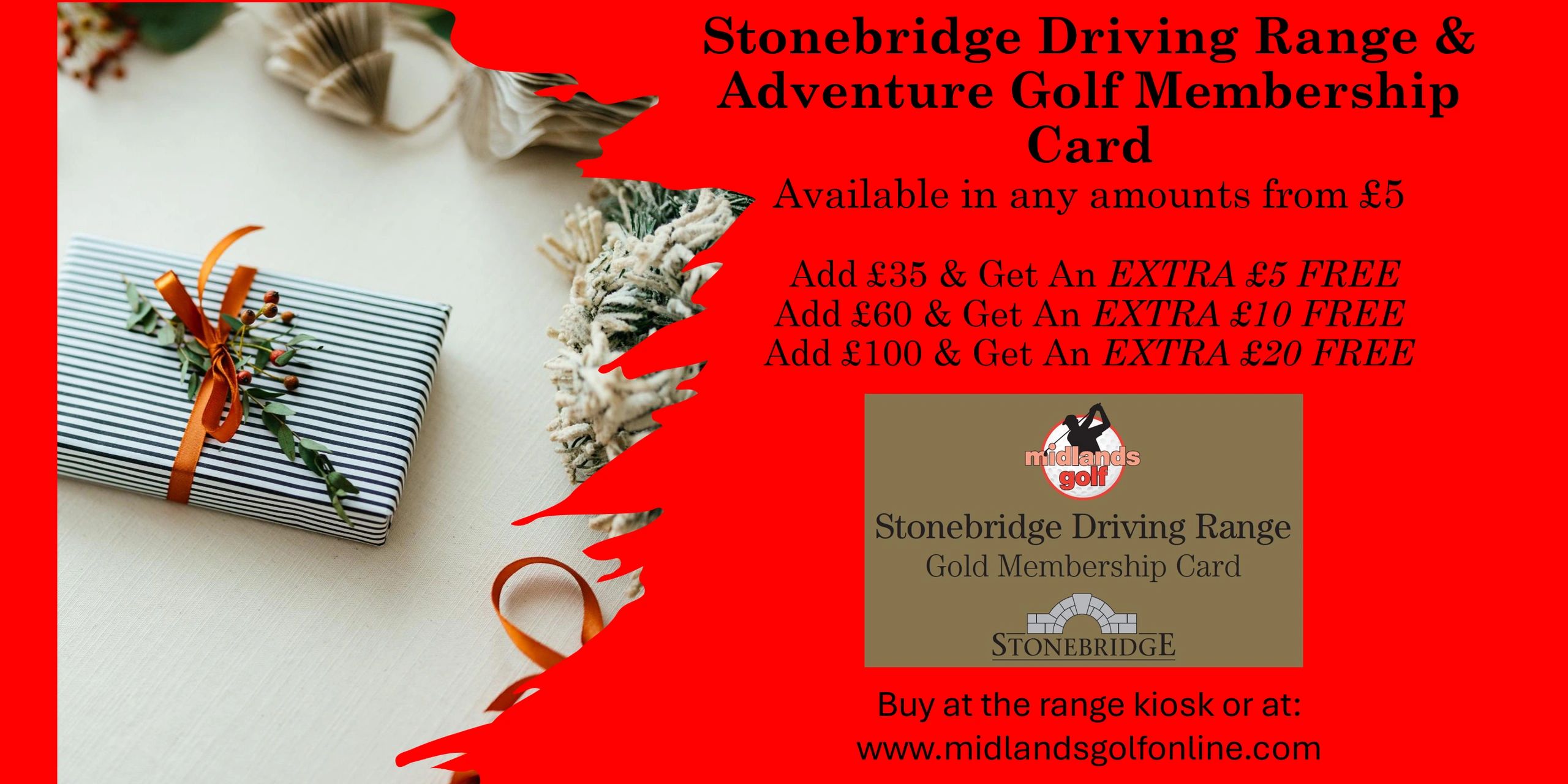 Available at the range kiosk, or via our Midlands Golf website by clicking on the button below